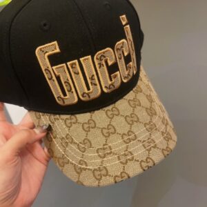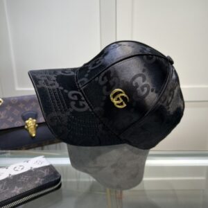 GUCCI GG MONOGRAM GOLD LOGO BASEBALL CAP BLACK