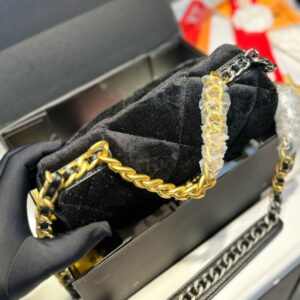 CHANEL 19 VELVET FLAP BAG BLACK 26CM