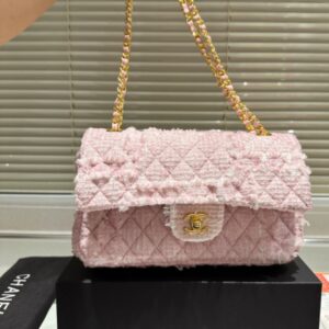 CHANEL CLASSIC TWEED PINK AND GOLD HARDWARE 25CM