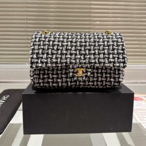 CHANEL CLASSIC TWEED BLACK AND GOLD HARDWARE 25CM