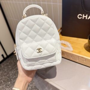 CHANEL GRAINED CALFSKIN LEATHER BACKPACK WITH CHAIN WHITE 22CM