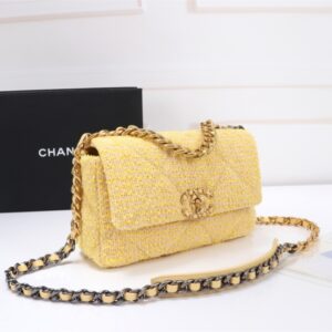 CHANEL 19 FLAP BAG QUILTED TWEED YELLOW 26CM