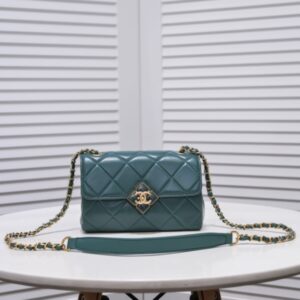 CHANEL DIAMOND LOCK FLAP BAG GREEN 18CM