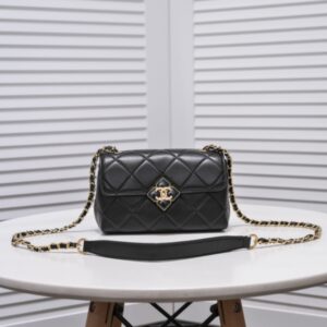 CHANEL DIAMOND LOCK FLAP BAG BLACK 18CM