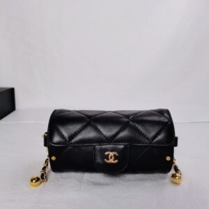 CHANEL LIPSTICK BAG WITH CHAIN GHW BLACK 15CM