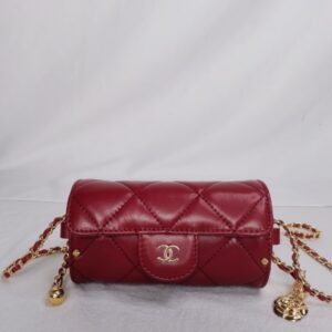 CHANEL LIPSTICK BAG WITH CHAIN GHW RED 15CM