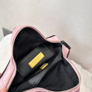 CHANEL STAR HAND BAG SATIN BLACK METAL LIGHT PINK 22CM