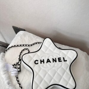 CHANEL STAR HAND BAG BLACK METAL WHITE 22CM