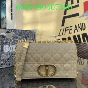 DIOR MEDIUM CARO SAND COLORED QUILTED BAG 25CM