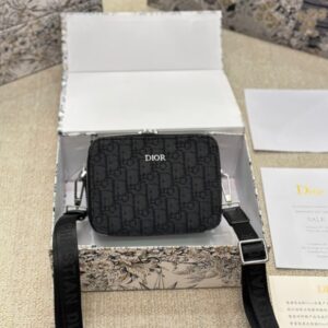 DIOR POUCH WITH SHOULDER STRAP BLACK OBLIQUE JACQUARD 17CM