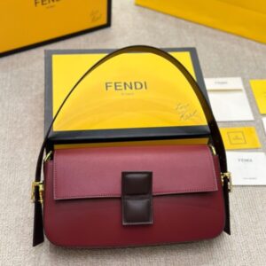 FENDI BAGUETTE BURGUNDY AND BLACK COLOR BLOCK LEATHER BAG 26CM 8BR821APKOF1NZ9