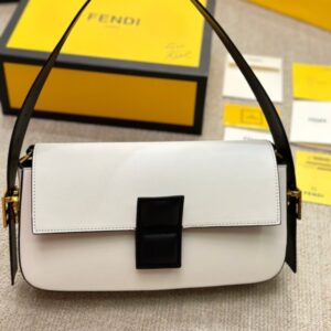 FENDI BAGUETTE WHITE AND BLACK COLOR BLOCK LEATHER BAG 26CM 8BR821APKOF1NZ3
