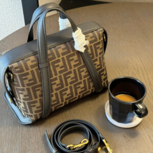 FENDI BOSTON 365 BROWN FF JACQUARD FABRIC BAG 27CM 8BL152ALP3F1N1S