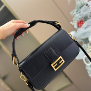 FENDI BAGUETTE BAG BLACK LEATHER 25CM 8BR822APG6F1CFJ