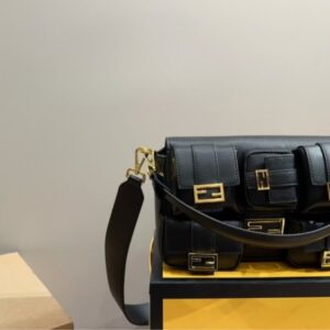 FENDI MULTIPOCKET BAGUETTE BROWN FF JACQUARD FABRIC BAG BLACK 26CM 8BR808ABVEF0KUR