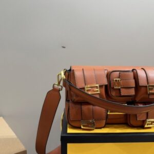 FENDI MULTIPOCKET BAGUETTE BROWN FF JACQUARD FABRIC BAG BROWN 26CM 8BR808ABVEF1C6J