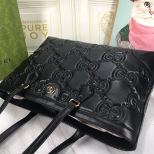 GUCCI GG MATELASSÉ LEATHER MEDIUM TOTE BAG BLACK 631685 UM8IG 1000