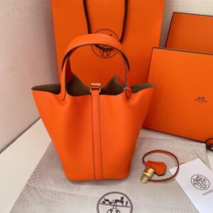 HERMES PICOTIN CLEMENCE GOLD HARDWARE ORANGE 22CM