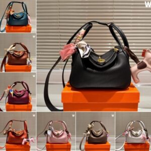 HERMES LINDY BAG WITH SCARF HANDLE AND HORSE CHARM BROWN 20CM
