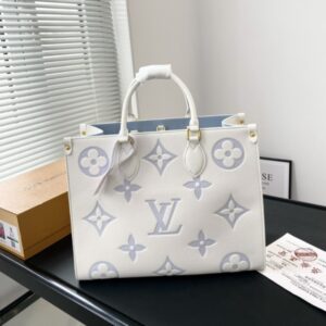 LOUIS VUITTON ONTHEGO MM BAG LATTE AND CANDY BLUE 34CM M46833