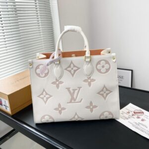 LOUIS VUITTON ONTHEGO MM BAG LATTE AND CHAMALLOW 34CM