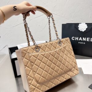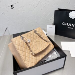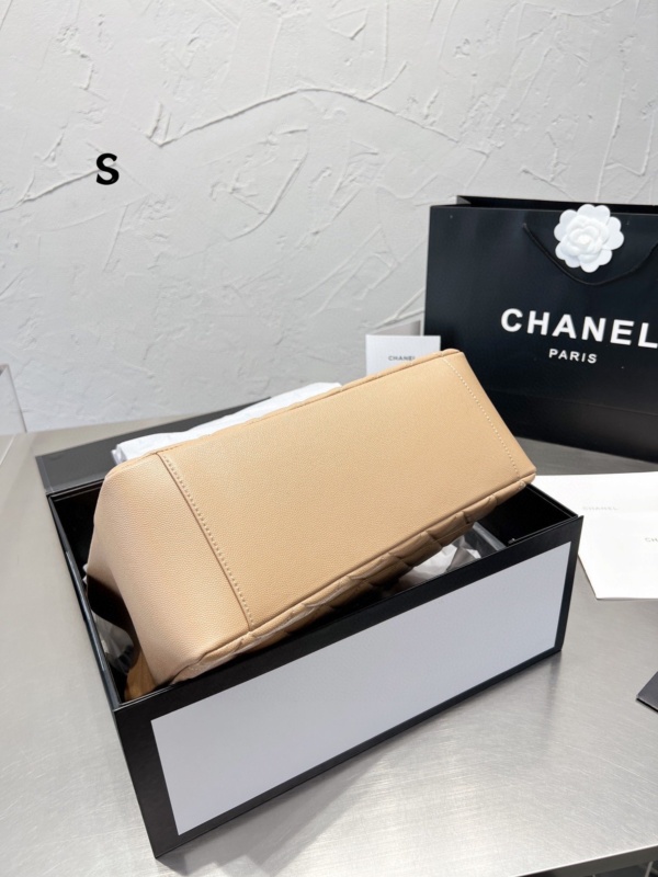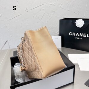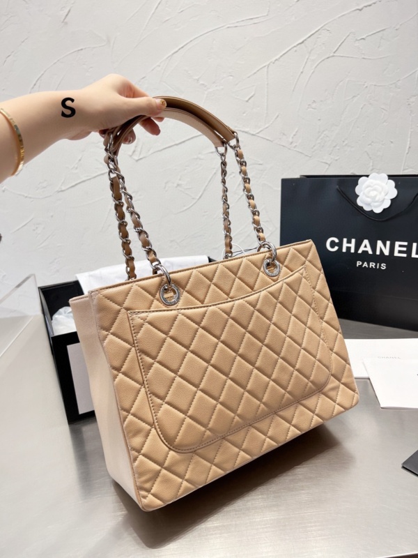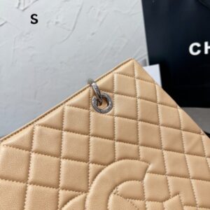 CHANEL GRAND SHOPPING TOTE BAG BEIGE CAVIAR 34CM