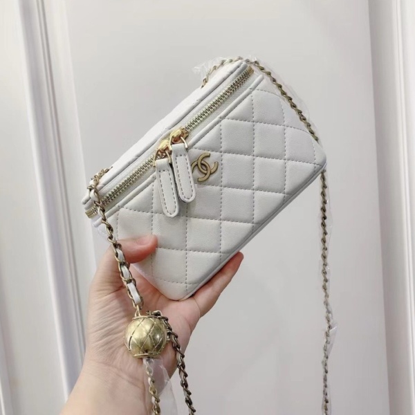 CHANEL PEARL CRUSH VANITY CASE WITH CHAIN IN WHITE 17CM