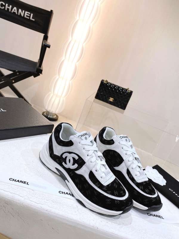 CHANEL PRINTED SUEDE CALFSKIN SNEAKERS WHITE AND BLACK G39230 X56653 94305