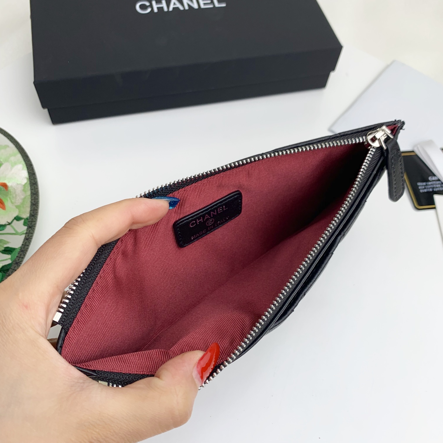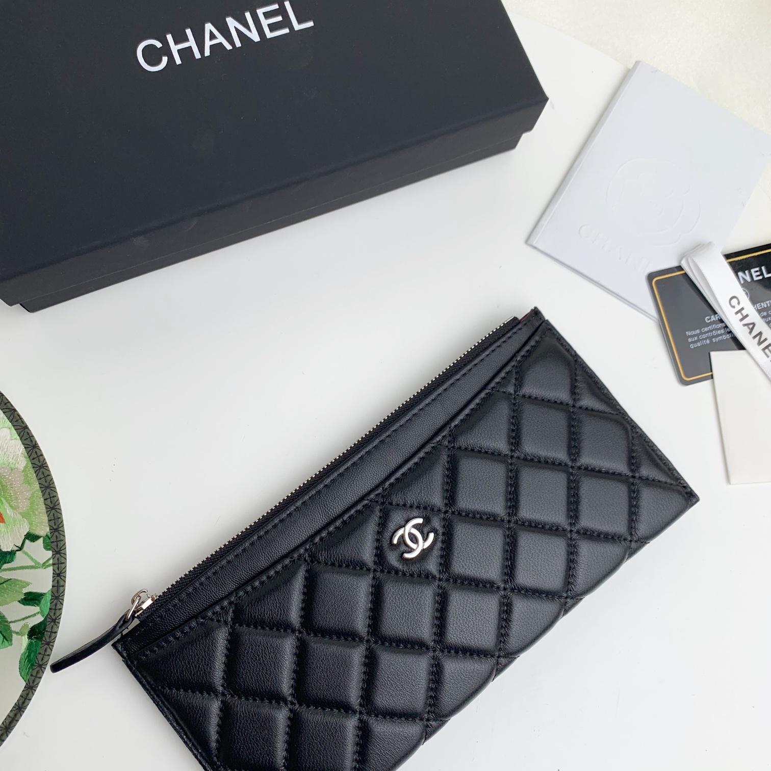 CHANEL QUILTED CLASSIC ZIP POUCH BLACK WALLET
