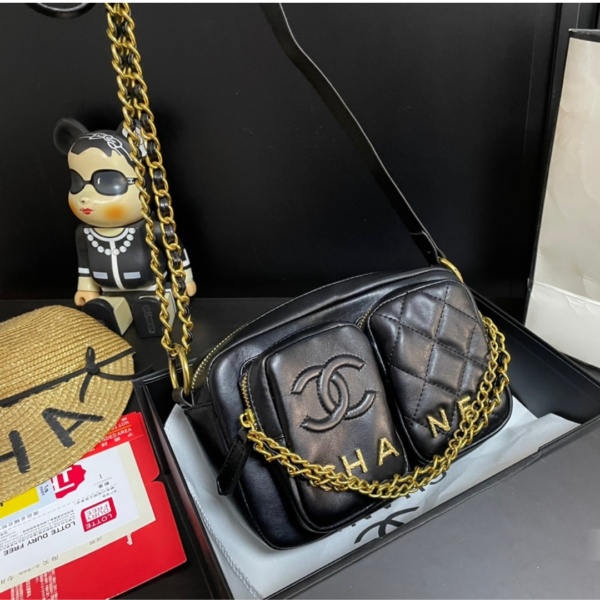 CHANEL QUILTED SMALL CAMERA CASE CALFSKIN BLACK 22CM