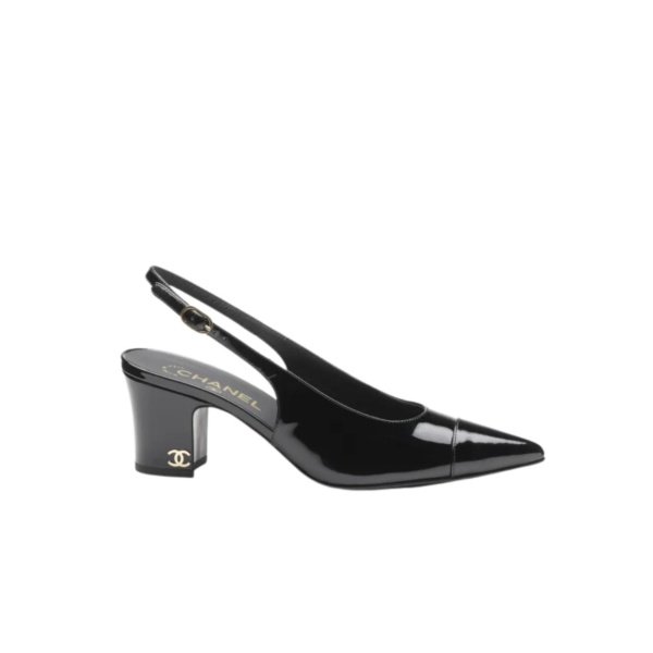 CHANEL SLINGBACKS HEELS PATENT CALFSKIN IN BLACK G45251 B14524 94305