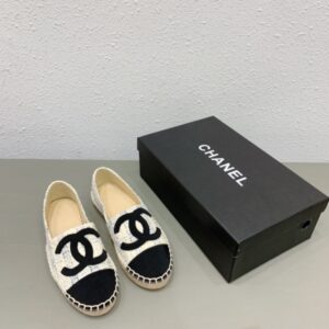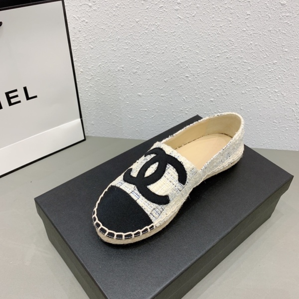 CHANEL TWEED CC ESPADRILLES SLIP ON LAMBSKIN WHITE BLUE BLACK