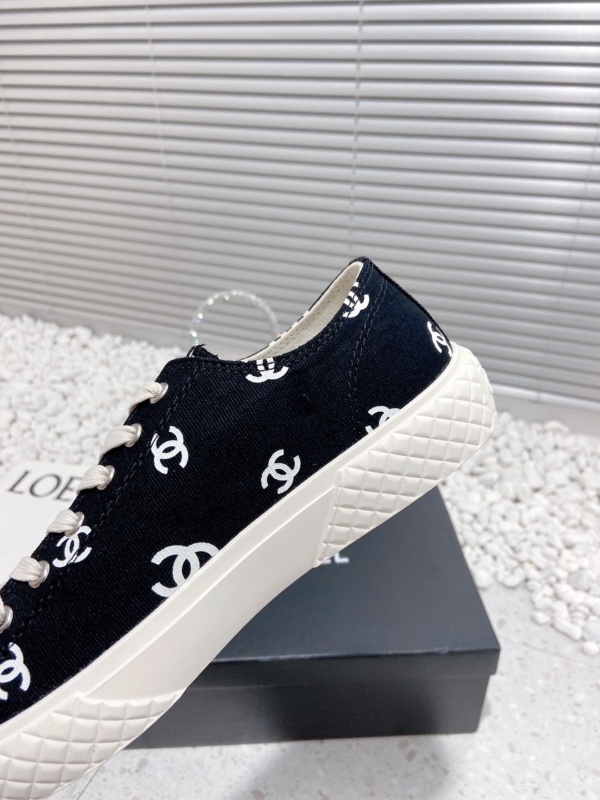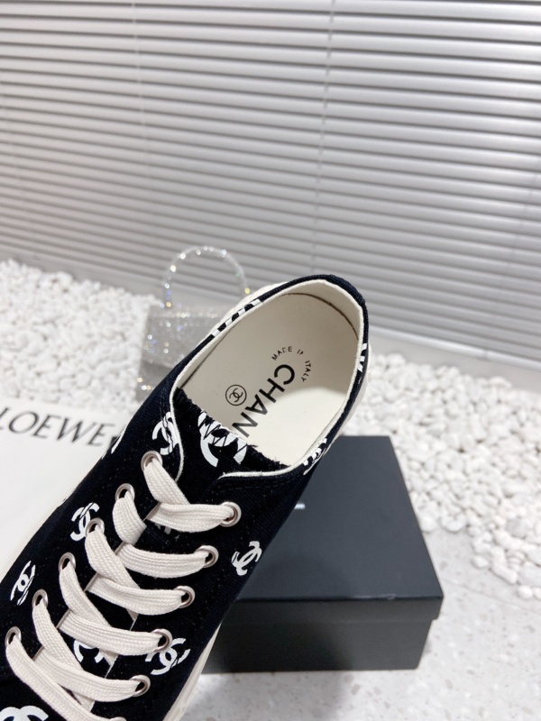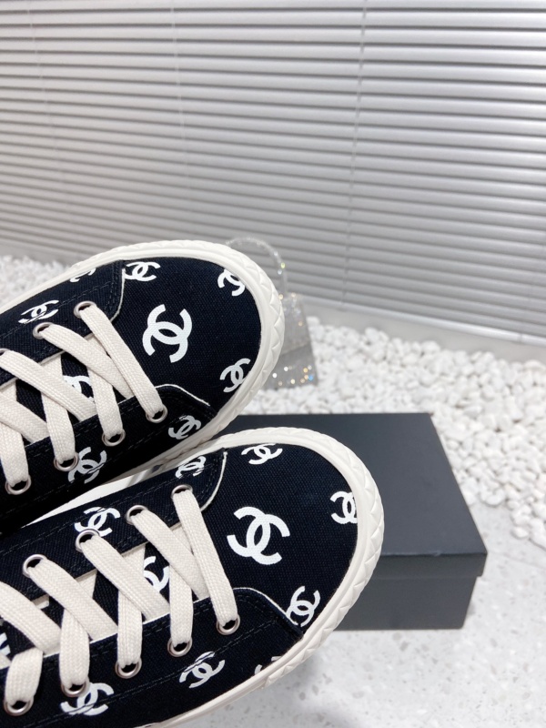 CHANEL VINTAGE CALFSKIN LEATHER SNEAKERS BLACK