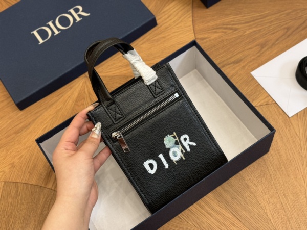 Zipped pocket on the front with leather band and D-ring to attach accessories