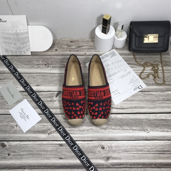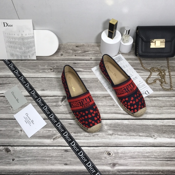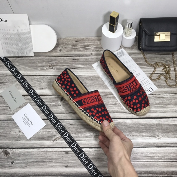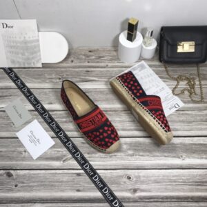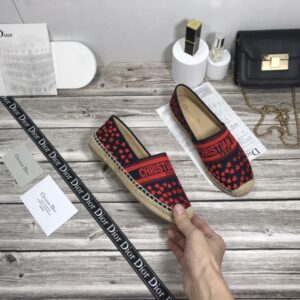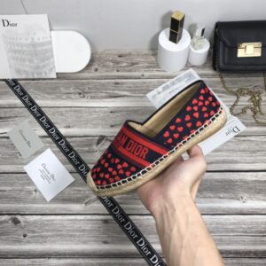 DIOR GRANVILLE ESPADRILLE LOGO HEART PRINT RED AND BLUE