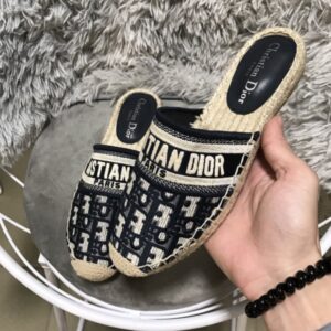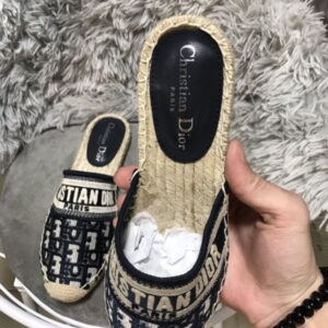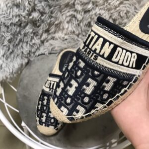 DIOR GRANVILLE OBLIQUE ESPADRILLE COTTON FLATS IN BLACK