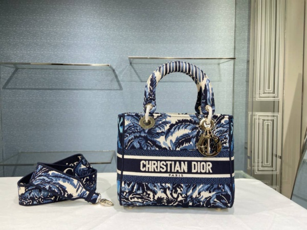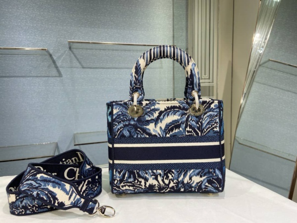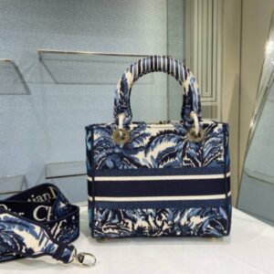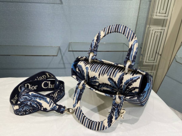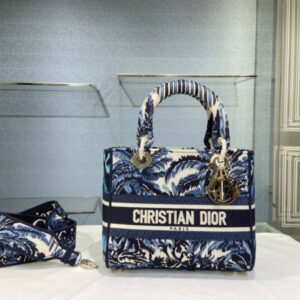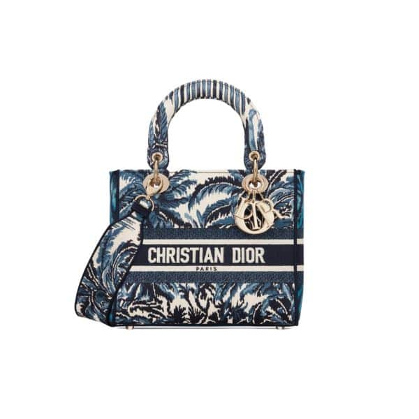 DIOR MEDIUM LADY D-LITE BAG BLUE TREES PALMS EMBROIDERY 24CM