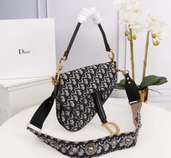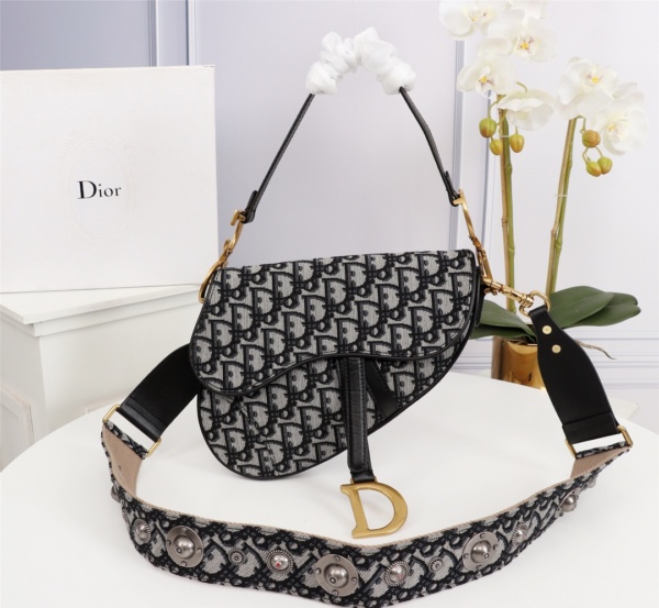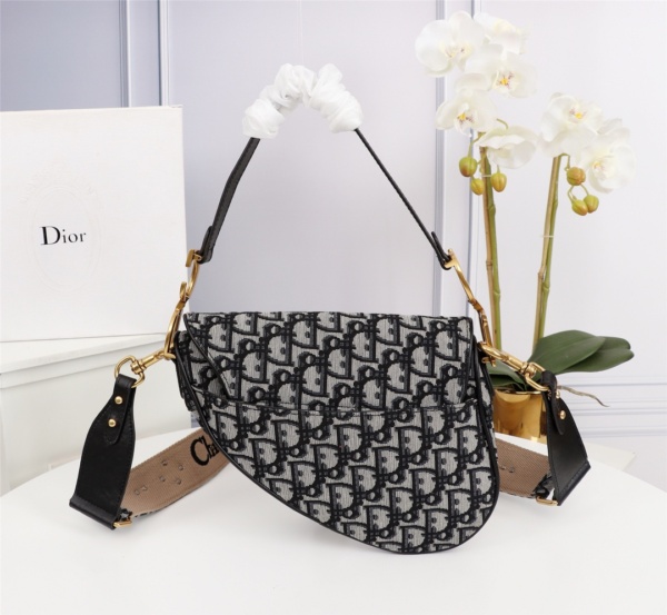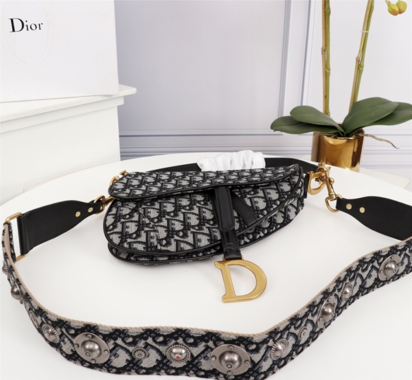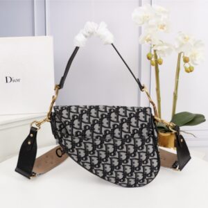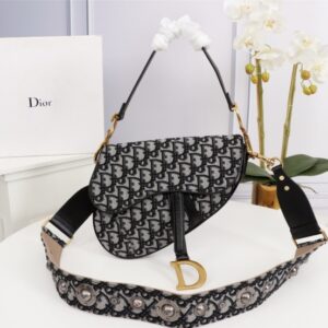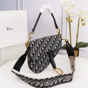 DIOR SADDLE BAGGRAY OBLIQUE EMBROIDERY BLACK