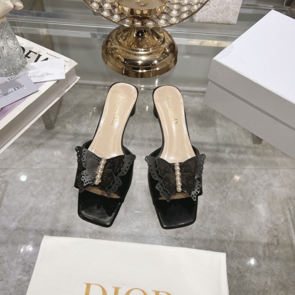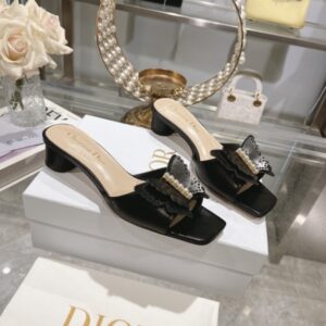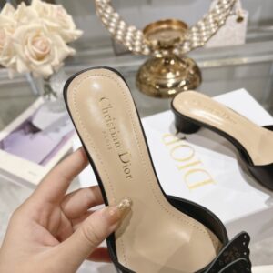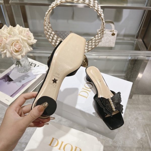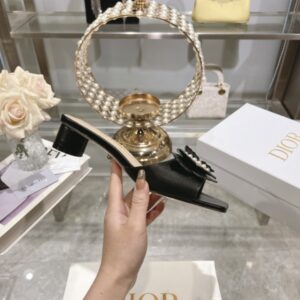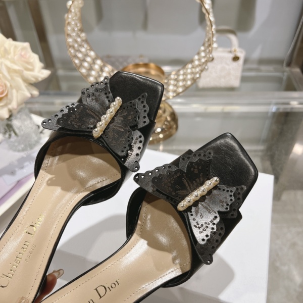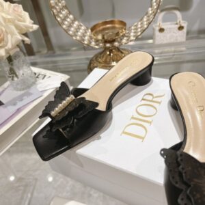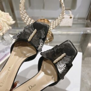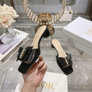 DIOR TALE MULE BLACK SUPPLE CALFSKIN AND WHITE RESIN PEARLS