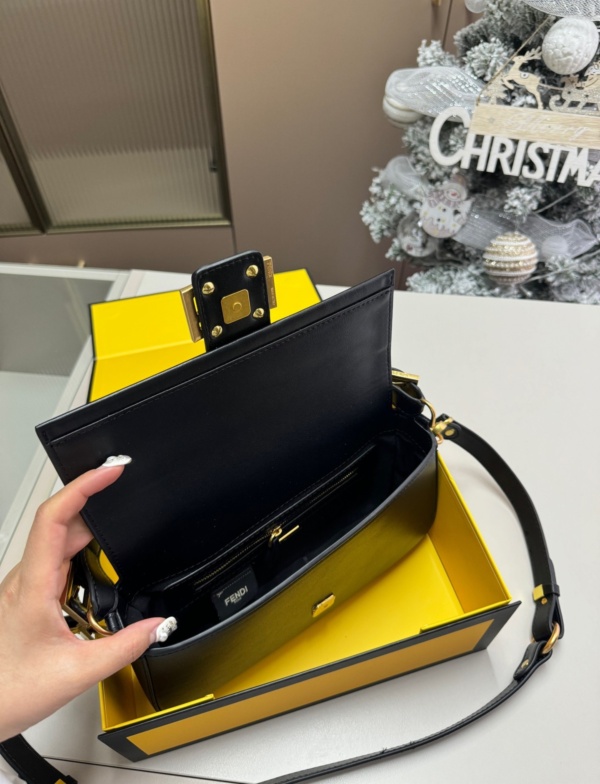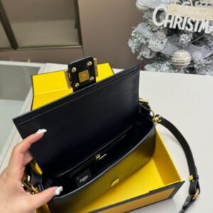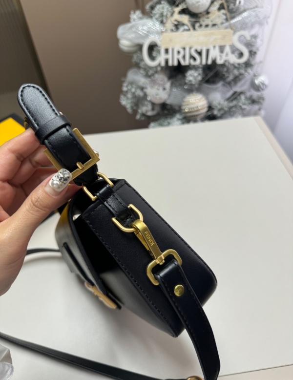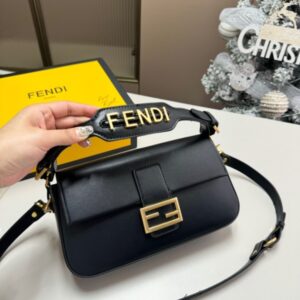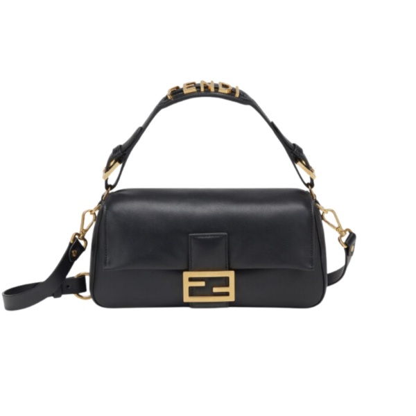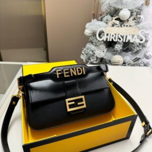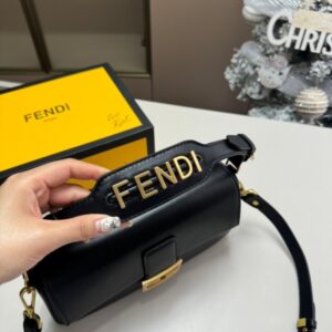 Embellished with a handle with metal FENDI lettering that can be hooked either to the bag or to the shoulder strap
