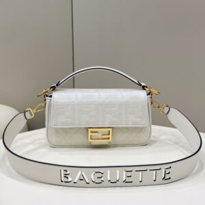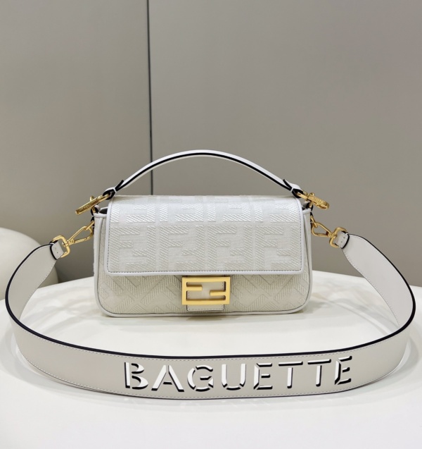 FENDI BAGUETTE FF CANVAS BAG WHITE 28CM 8BR600AMCDF1CFK