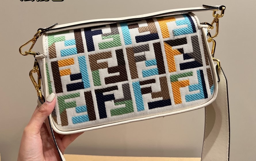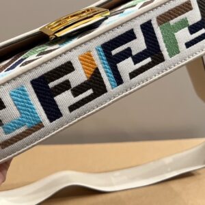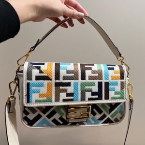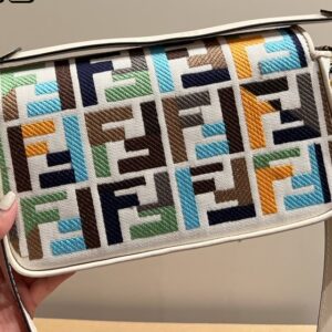 FENDI BAGUETTE MULTICOLOUR CANVAS BAG WITH FF EMBROIDERY 26CM