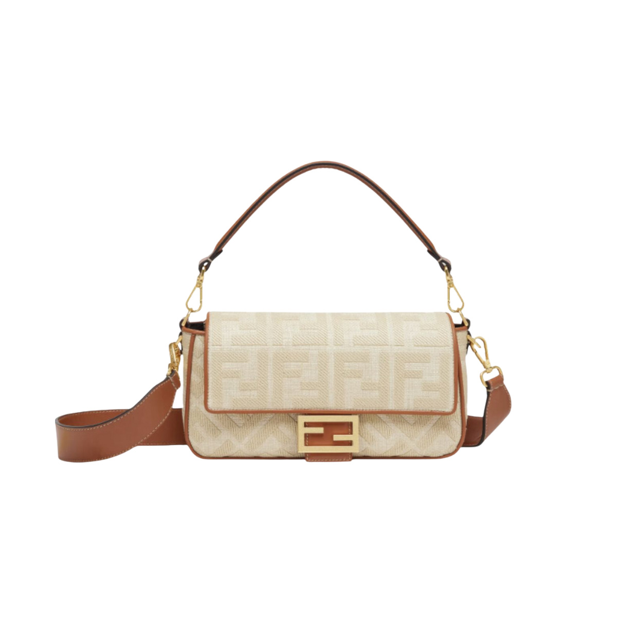 - Made of natural-coloured straw with a tone-on-tone raised embroidery FF motif.
