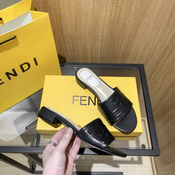 FENDI SILK COWHIDE SLIPPERS BLACK