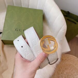 Be the first to review “GUCCI CALFSKIN MONOGRAM WHITE BELT GOLD METAL 3.5CM” Cancel reply