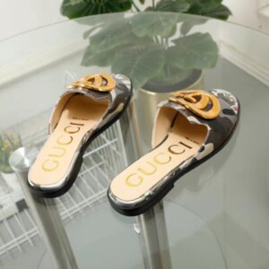 GUCCI PRINCETOWN GG COW PRINT SLIPPERS SLIVER TONE