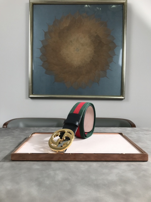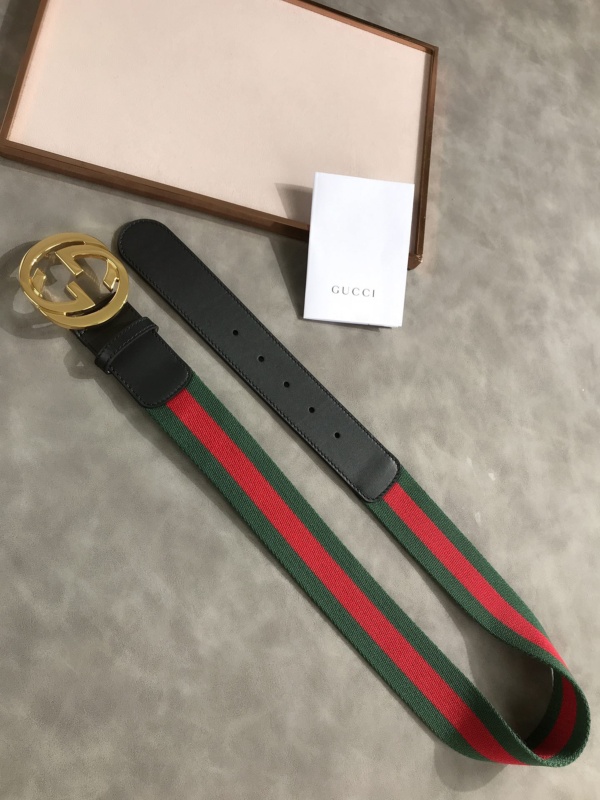 GUCCI WEB BELT WITH G BUCKLE GREEN 4CM