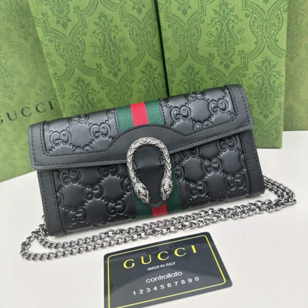 GUCCI WOMEN’S DIONYSUS GG SUPREME CHAIN BAG BLACK 19CM