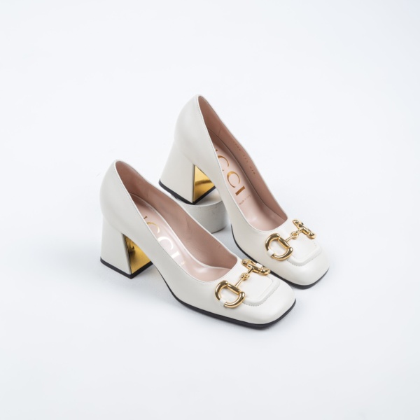 GUCCI WOMEN’S MID HEEL PUMP WITH HORSEBIT WHITE