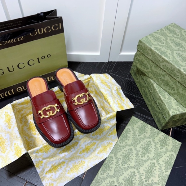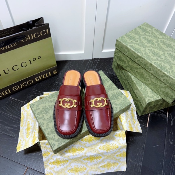 GUCCI WOMENS SLIPPER WITH INTERLOCKING G RED